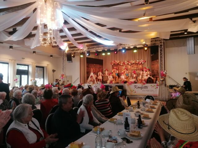 Bei Kaffee und Kuchen erwartete uns ein buntes und abwechslungsreiches Programm. Die farbenfrohe Dekoration sorgte von Anfang an für die passende karnevalistische Stimmung und lud zum Mitfeiern ein. Von schwungvollen Tanzeinlagen bis hin zu humorvollen Büttenreden war für beste Unterhaltung gesorgt.